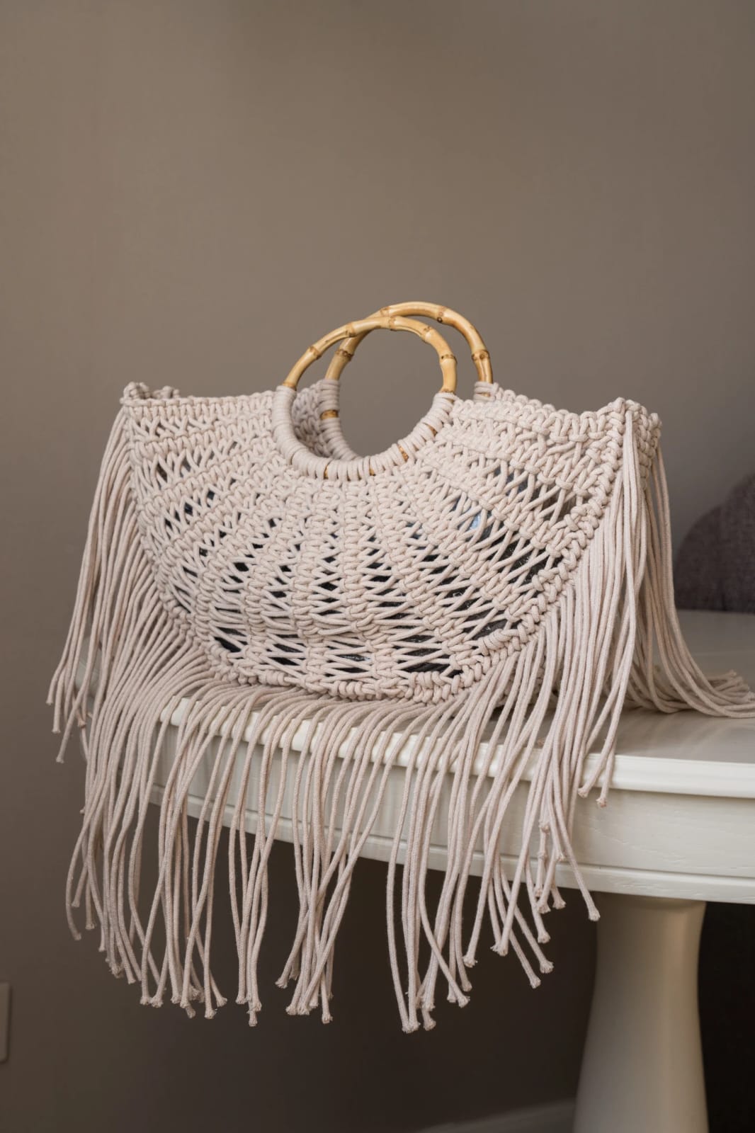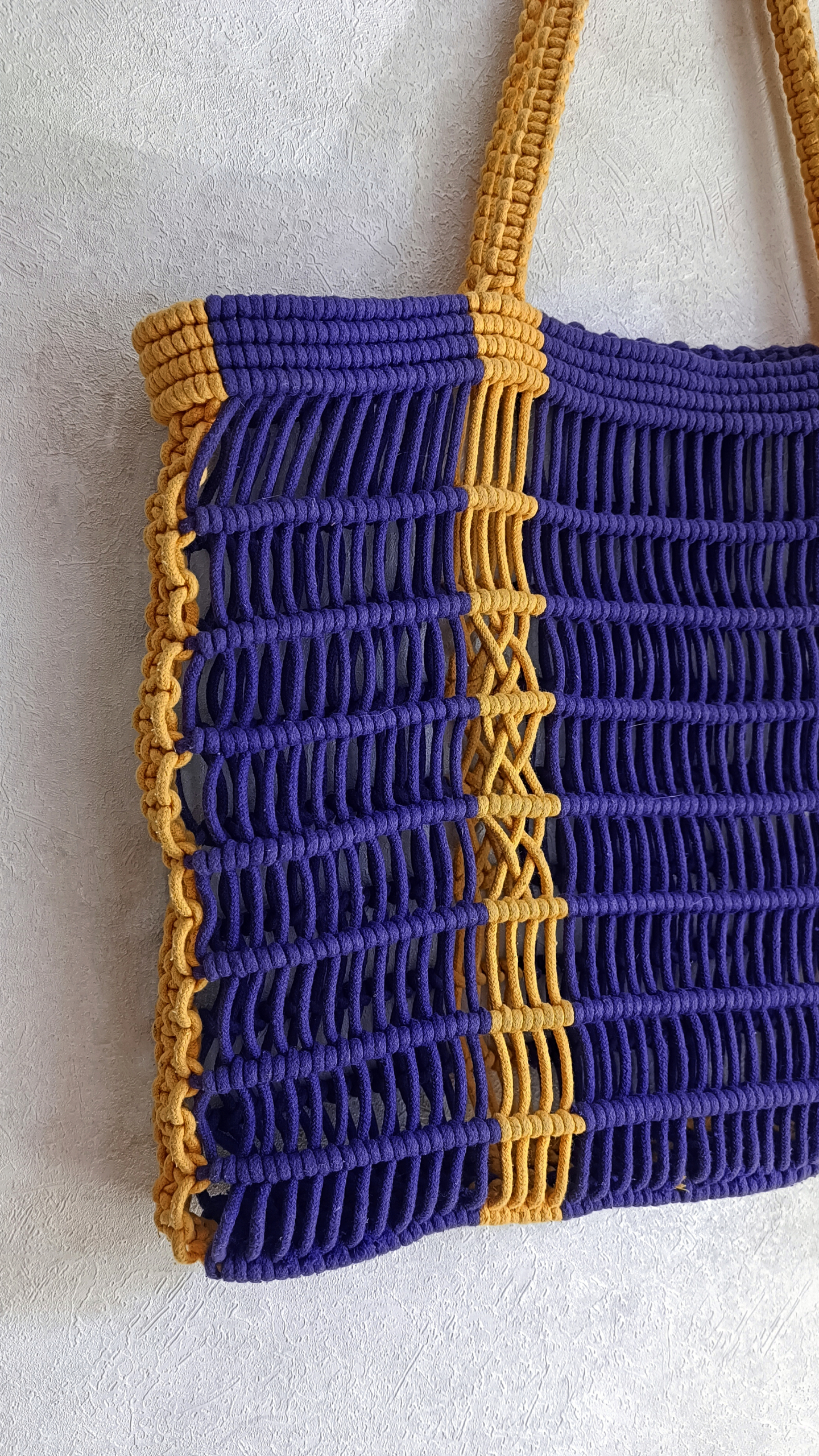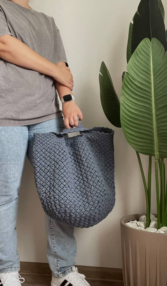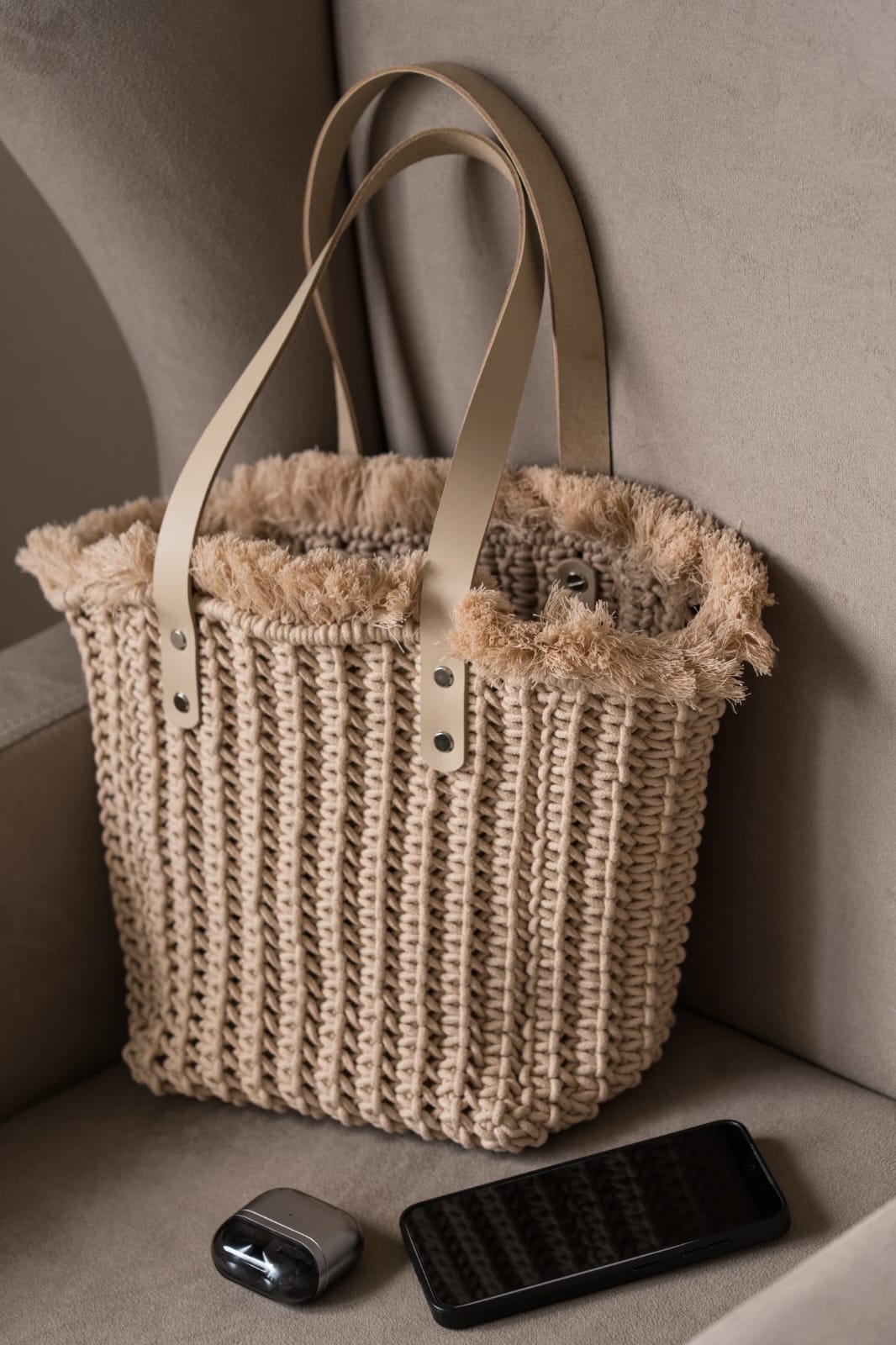 Моя первая сумка, ни разу до этого не брала в руки шнур. Увидев в сети примеры сумок, захотелось попробовать.