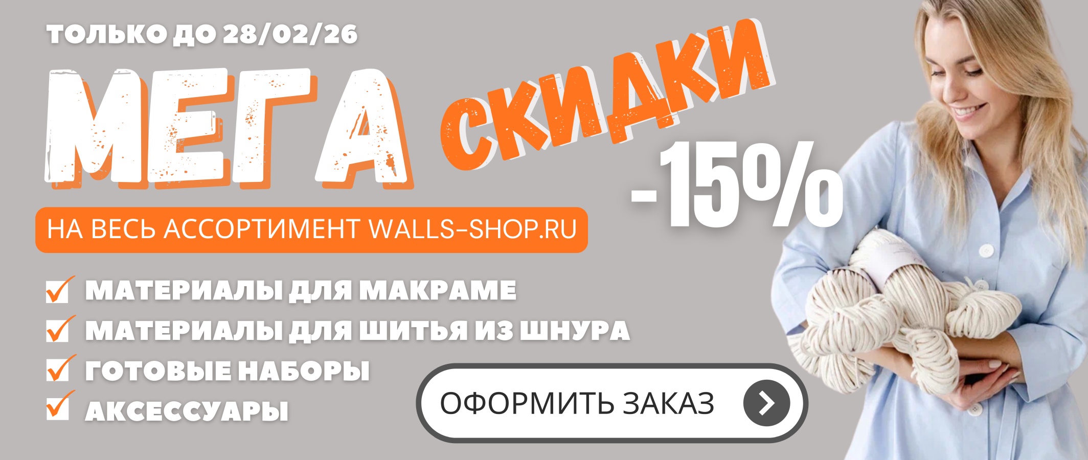 - МЕГА СКИДКИ -15%Действует до: 28.02.2026 Только до 28 февраля 2026 включительно успей приобрести любимые материалы с ШИКАРНОЙ скидкой 🔥🔥🔥 В акции участвует весь ассортимент: Такого ещё не было и навряд ли будет 😉 Не откладывайте на потом! Количество товара ограничено! 👉 Переходите в… Читать далее: МЕГА СКИДКИ -15%
