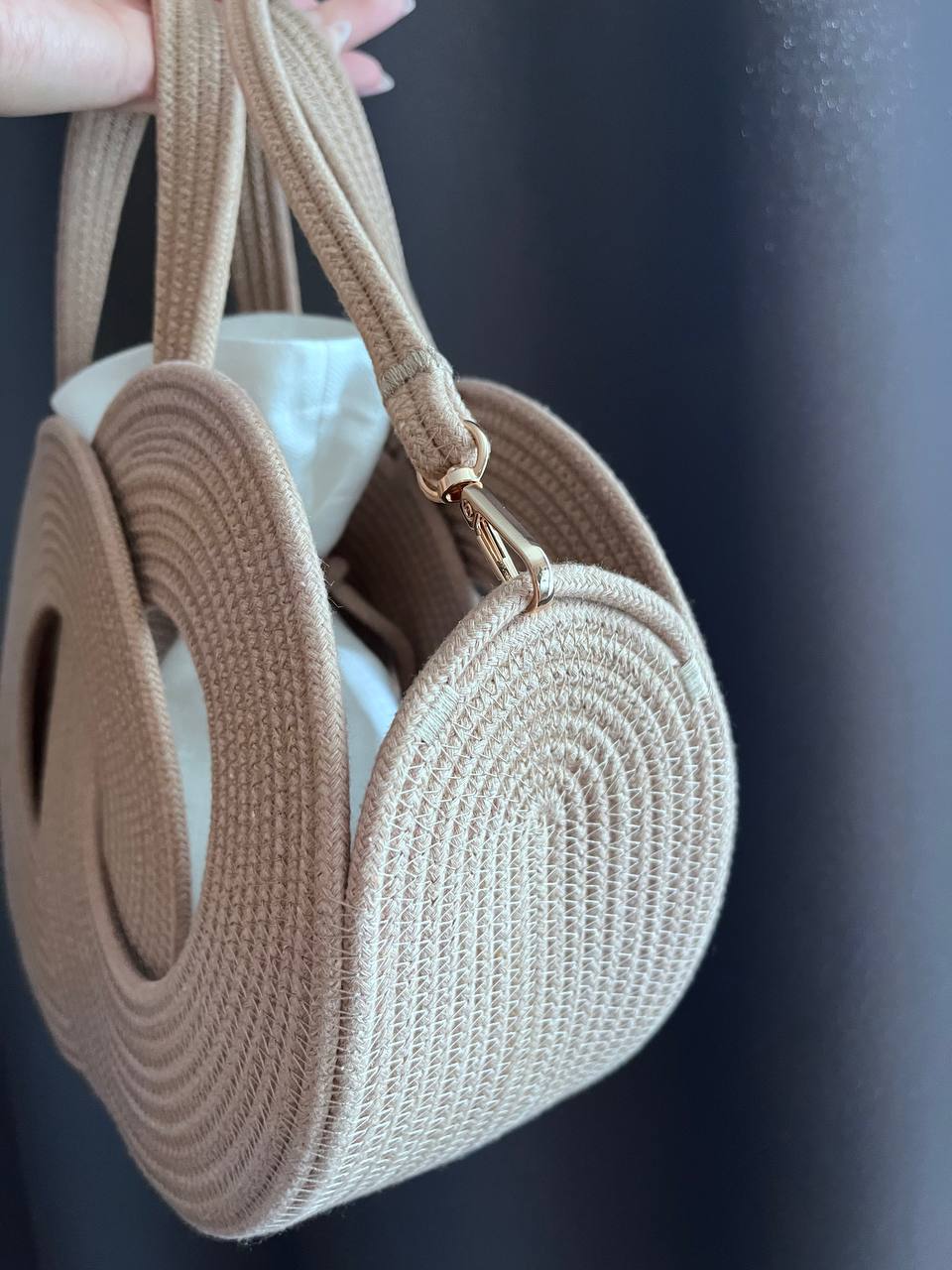 Очень классный цвет! Изделия из плетеного шнура отлично держат форму!
