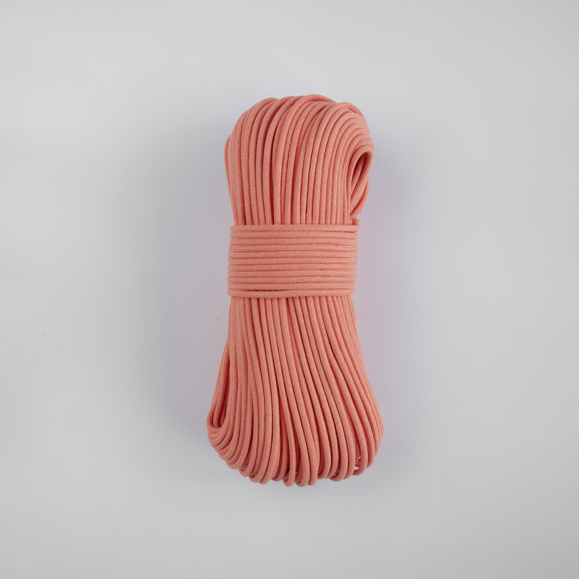 Шнур плетёный 5 мм коралловый с сердечником. Уровень жёсткости 1. Немного ярче персикового светлого.