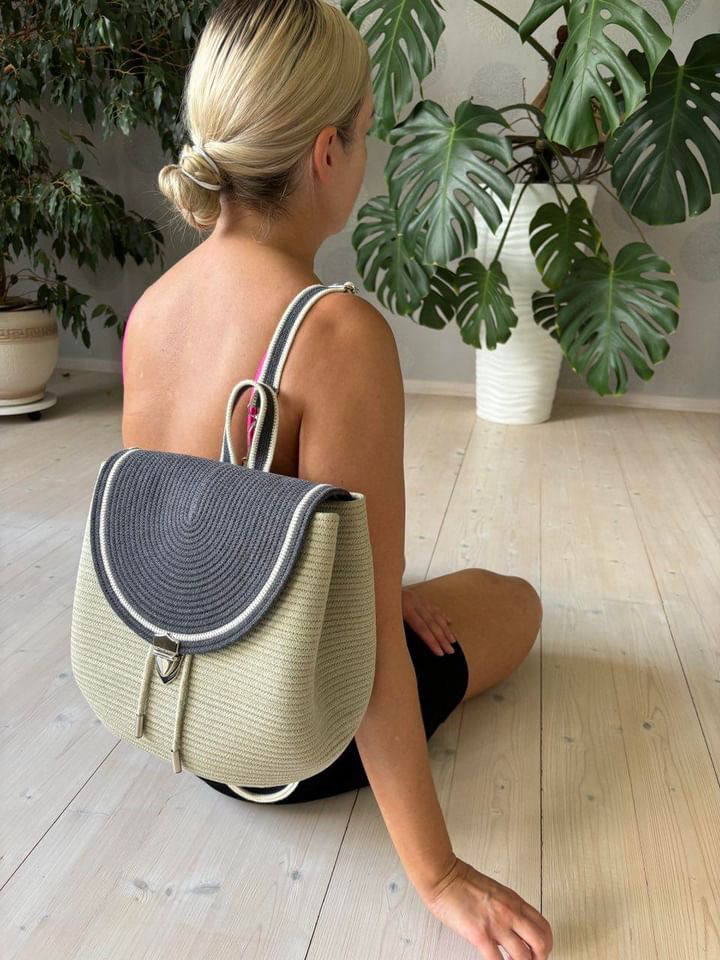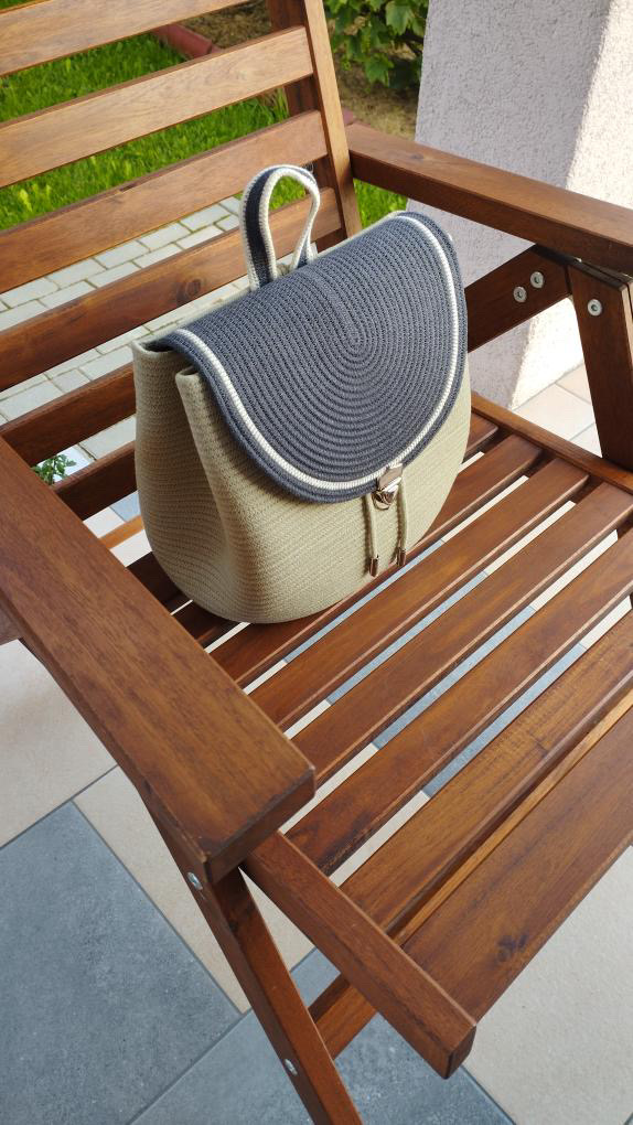 Благодаря тому, что плетеный шнур мягче, эластичнее и бархатистее вязаного, из него можно сшить не только сумки, но и рюкзаки.