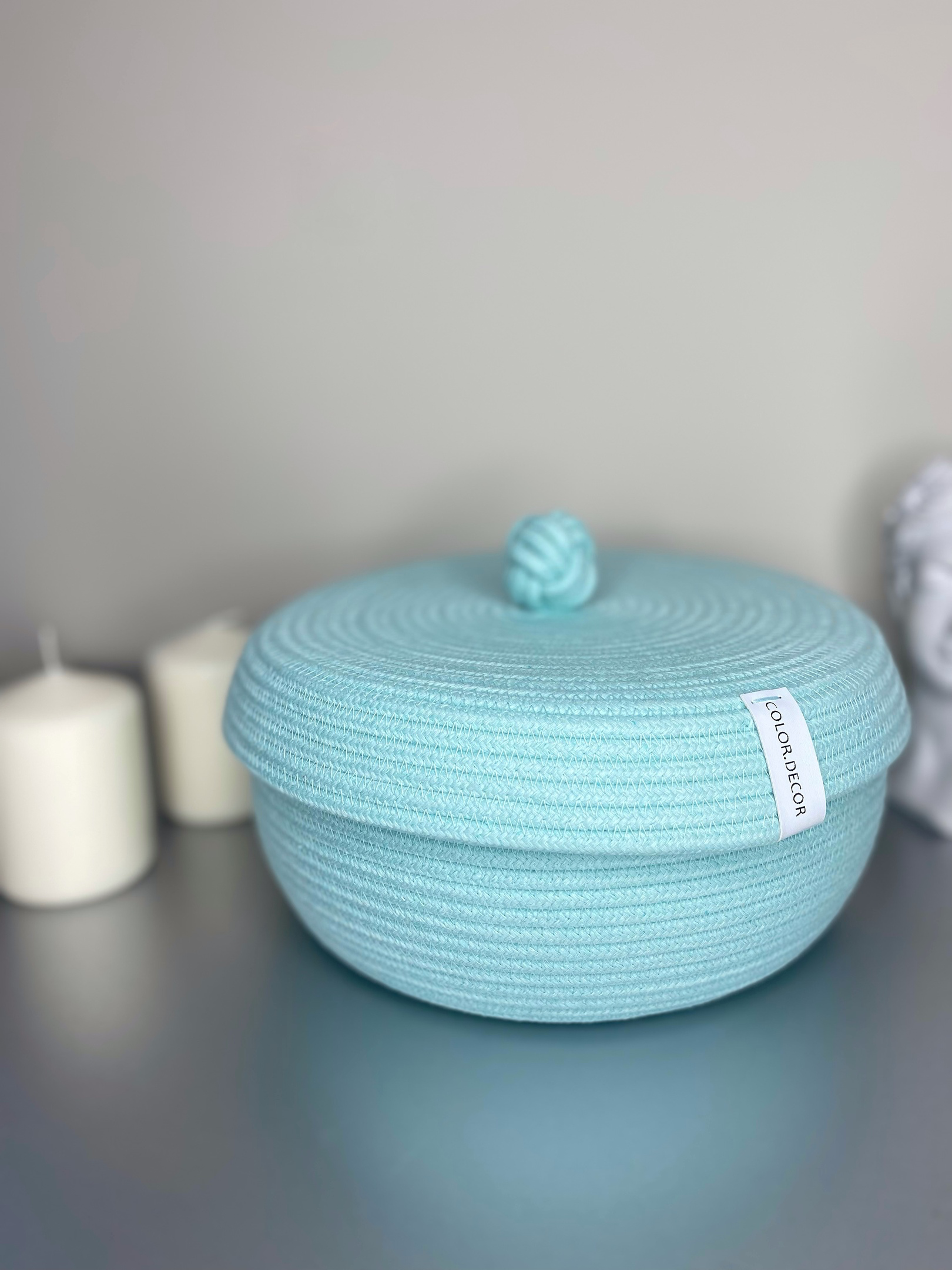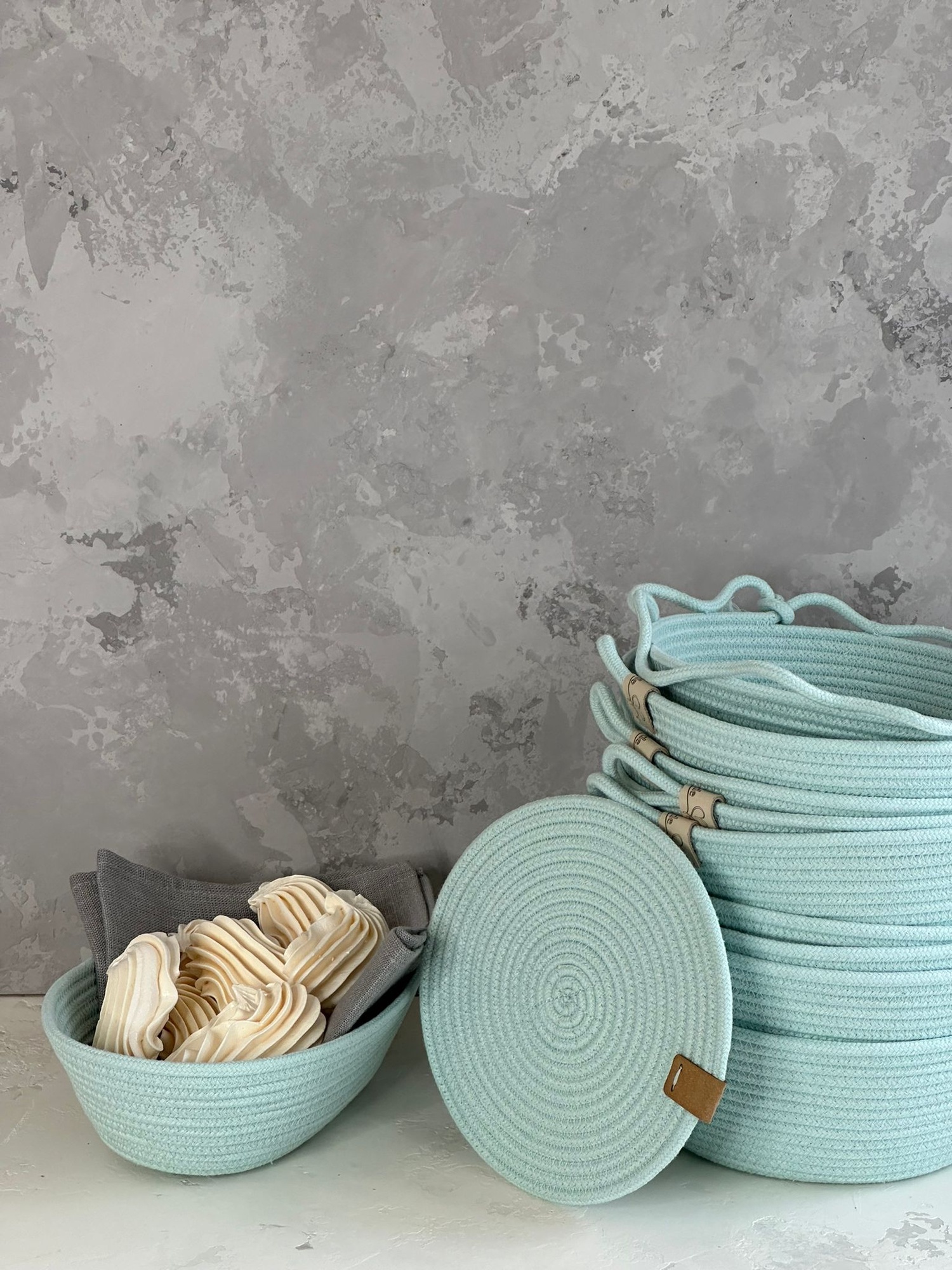 Сшила из бирюзового шнура салфетки, корзинки, раздарила на праздники, все были в восторге от подарков