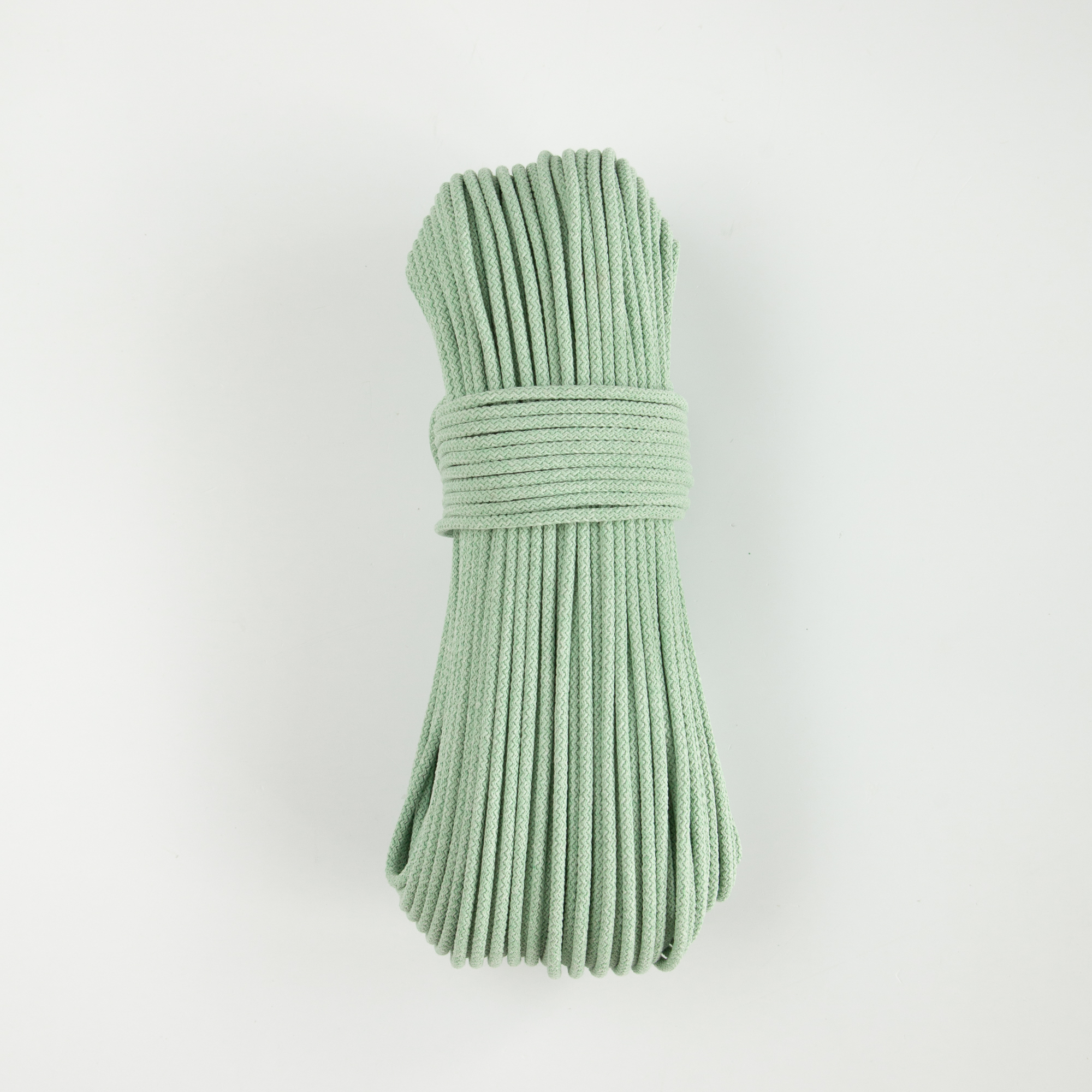 Вязаный шнур — более жёсткий, чем аналогичный плетёный цветной шнур 5 мм с сердечником. Уровень жёсткости 2.