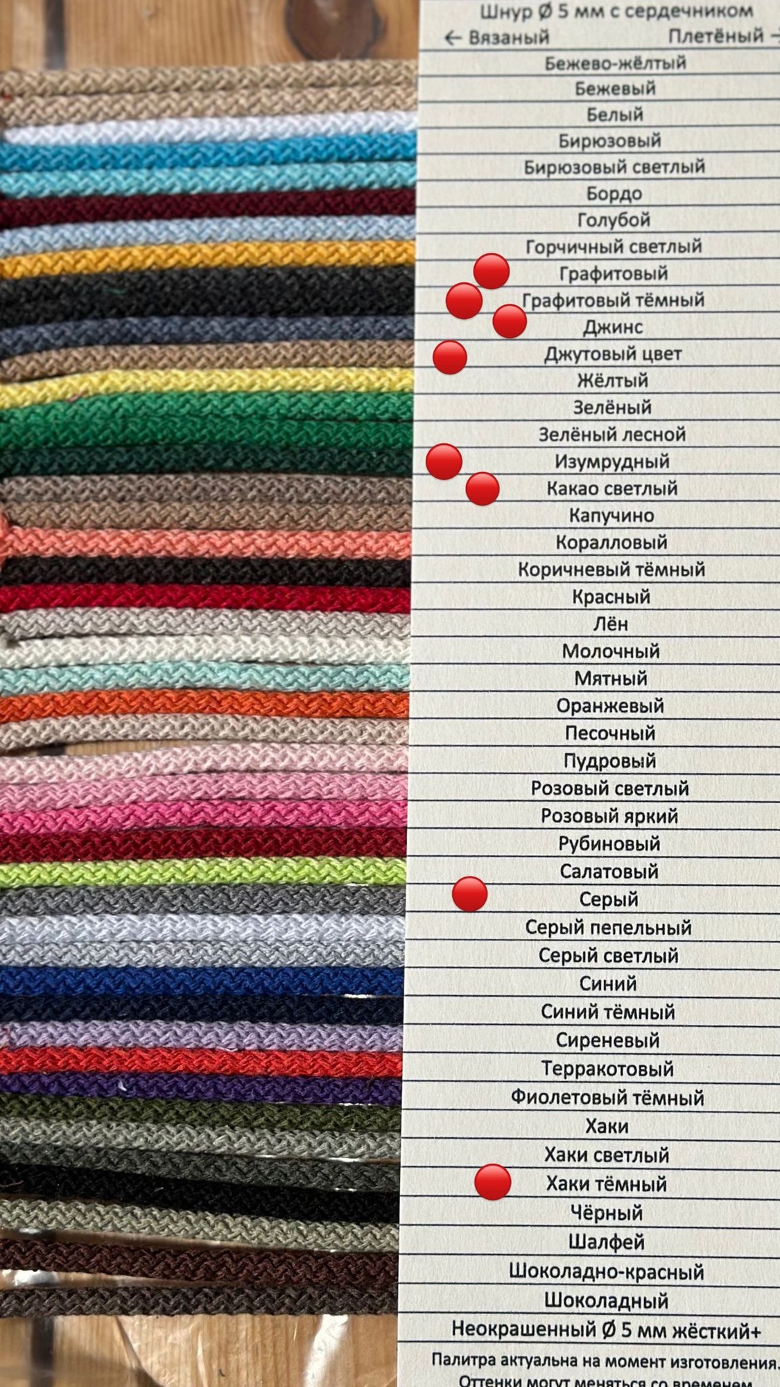 Цвета шнура от партии к партии могут меняться в связи с изменением цвета исходного сырья (на что мы повлиять не можем).