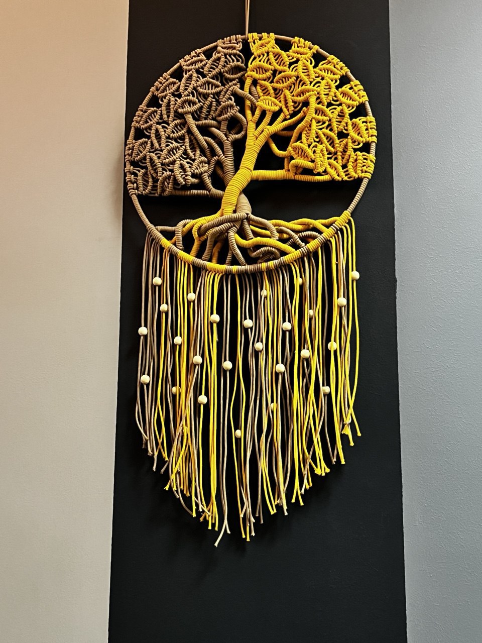 Готовый набор Древо макраме рассчитан на самостоятельное плетение Круглого Древа (45 см х 95 см) — красивое декоративное изделие из шнура 3 мм с сердечником на кольце 45 см.