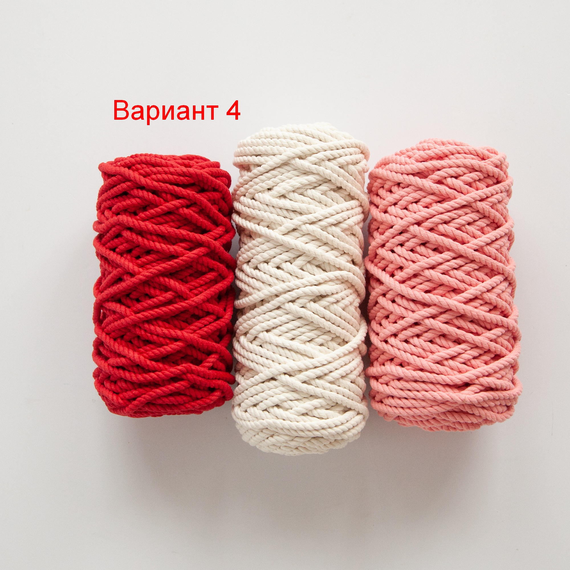 - Трёхпрядная верёвка 5 мм — 3 отрезка разного цвета по 8,5 метров