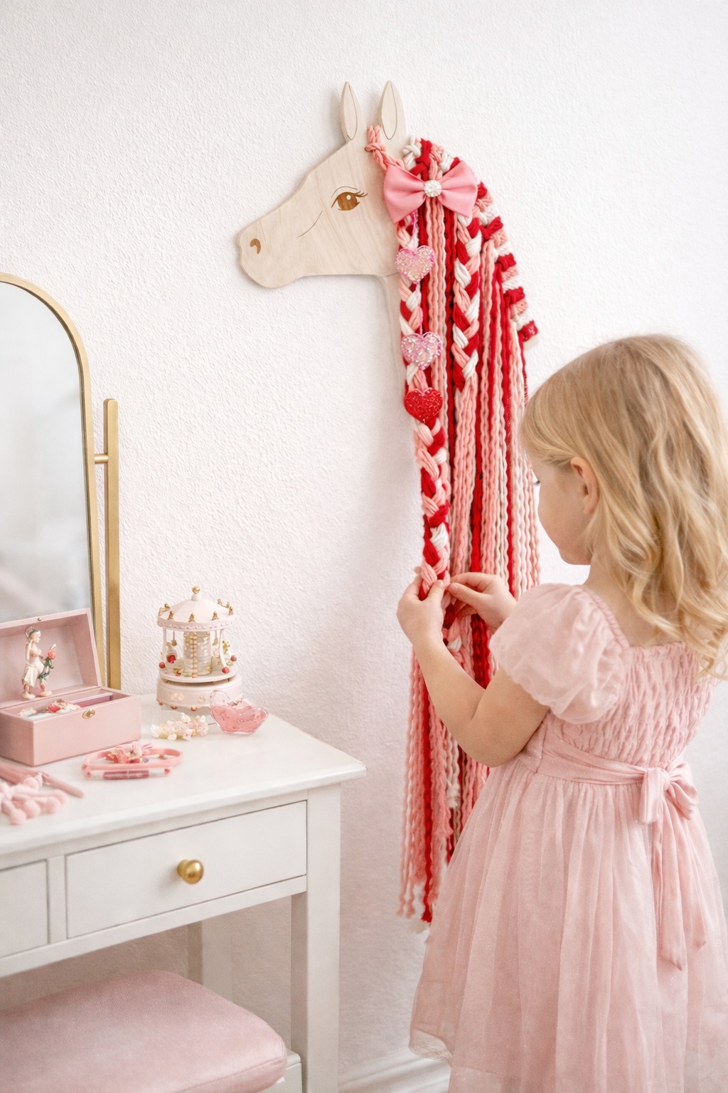 Очень классный набор для первого знакомства ребёнка с макраме. Все очень просто, понятно и заманчиво по цветам и идее. Дочь с удовольствием заплела косы и сказала что хочет еще такой набор😂 Нравится, что Единорог это не просто украшение интерьера , но и хранение резиночек, заколочек, которые вечно раскидает по всей детской.